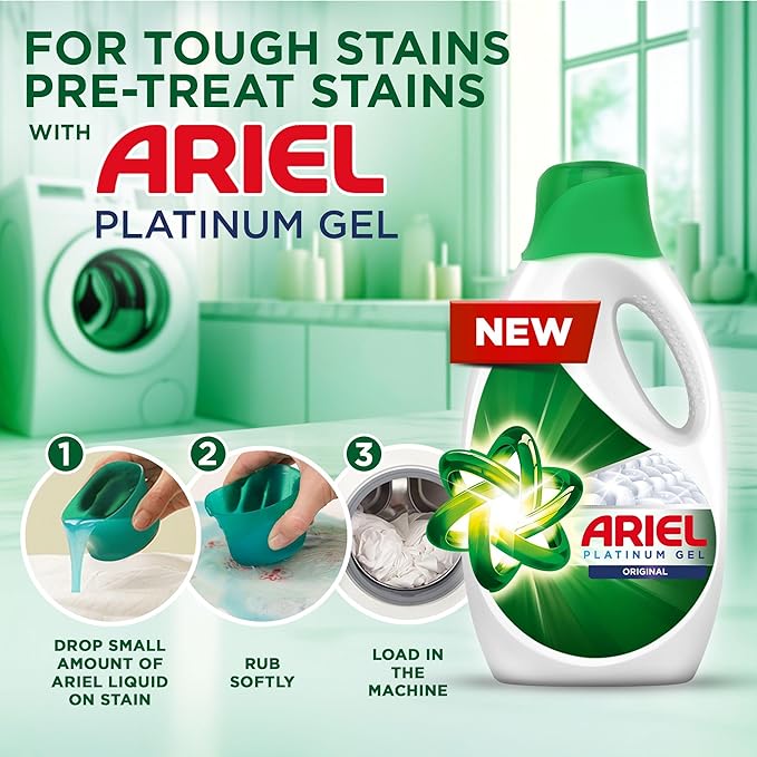 Ariel Platinum Gel delivers the ultimate cleaning performance with its powerful 5X stain-removal formula.