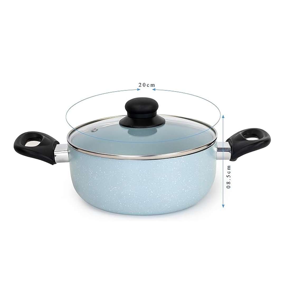 The cookware features a sturdy aluminum body for fast and even heat distribution, helping you cook efficiently while saving energy. Each pot includes a tempered glass lid, so you can monitor your food without lifting the cover. The soft-touch, heat-resistant handles provide a comfortable and secure grip for safe cooking.