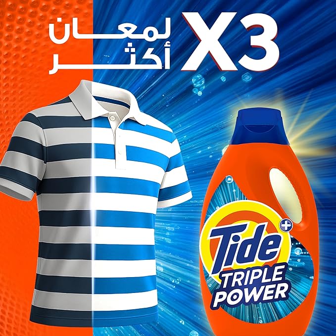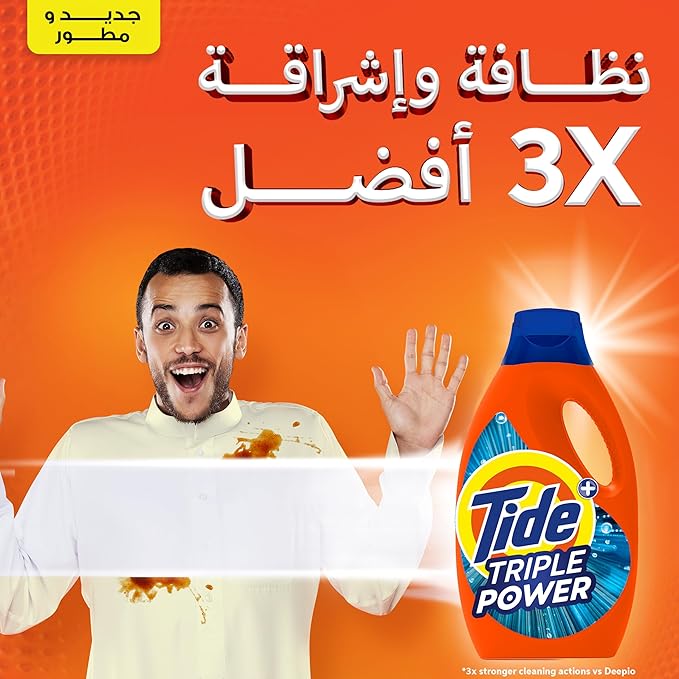 Experience a deeper, brighter clean with Tide Triple Power Liquid Detergent.